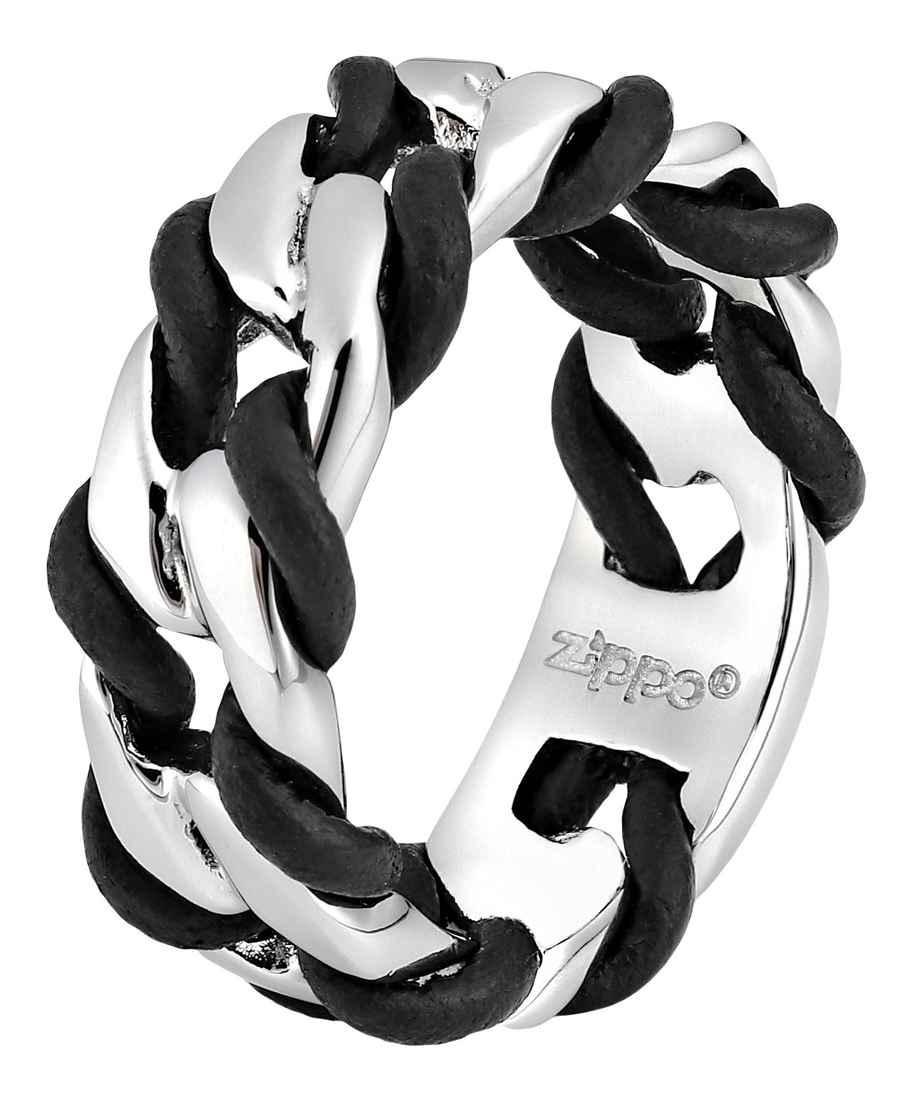 Roostevabast terasest ja nahast põimuv sõrmus. Zippo logo siseküljel. Rõnga suurus Ø 22,3 mm. Kinkekarbis.
