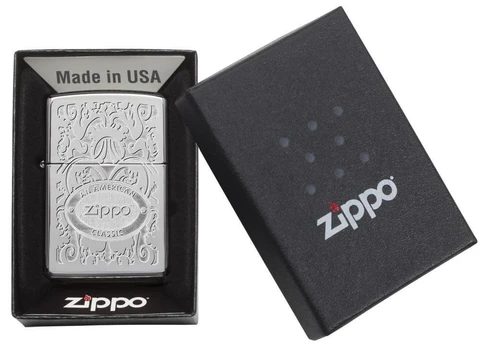 Valmistatud USA-s, eluaegne töökindluse garantii – “It works or we fix it free™”. Ehtne tuulekindel tulemasin iseloomuliku Zippo „klikiga“. Parima töökindluse tagamiseks kasutage ainult Zippo kaubamärgi lisandeid: Zippo tulemasinabensiin, kivi ja taht. Tulemasin ei ole algselt tulemasinabensiiniga täidetud (müüakse eraldi), kõik Zippo tulemasinad on korduvtäidetavad. Kasutusjuhendi leiate Zippo karbi kaane alt.