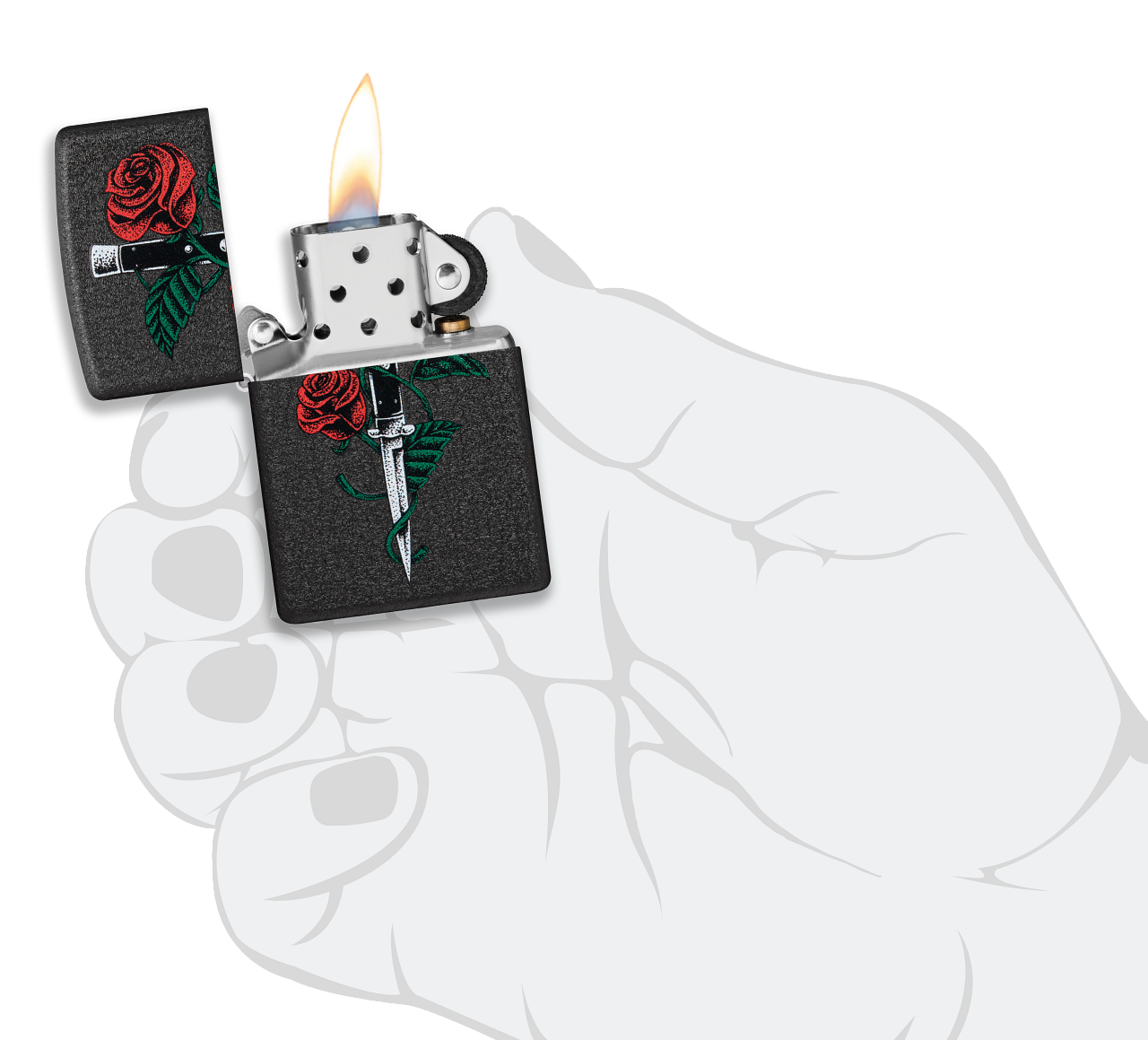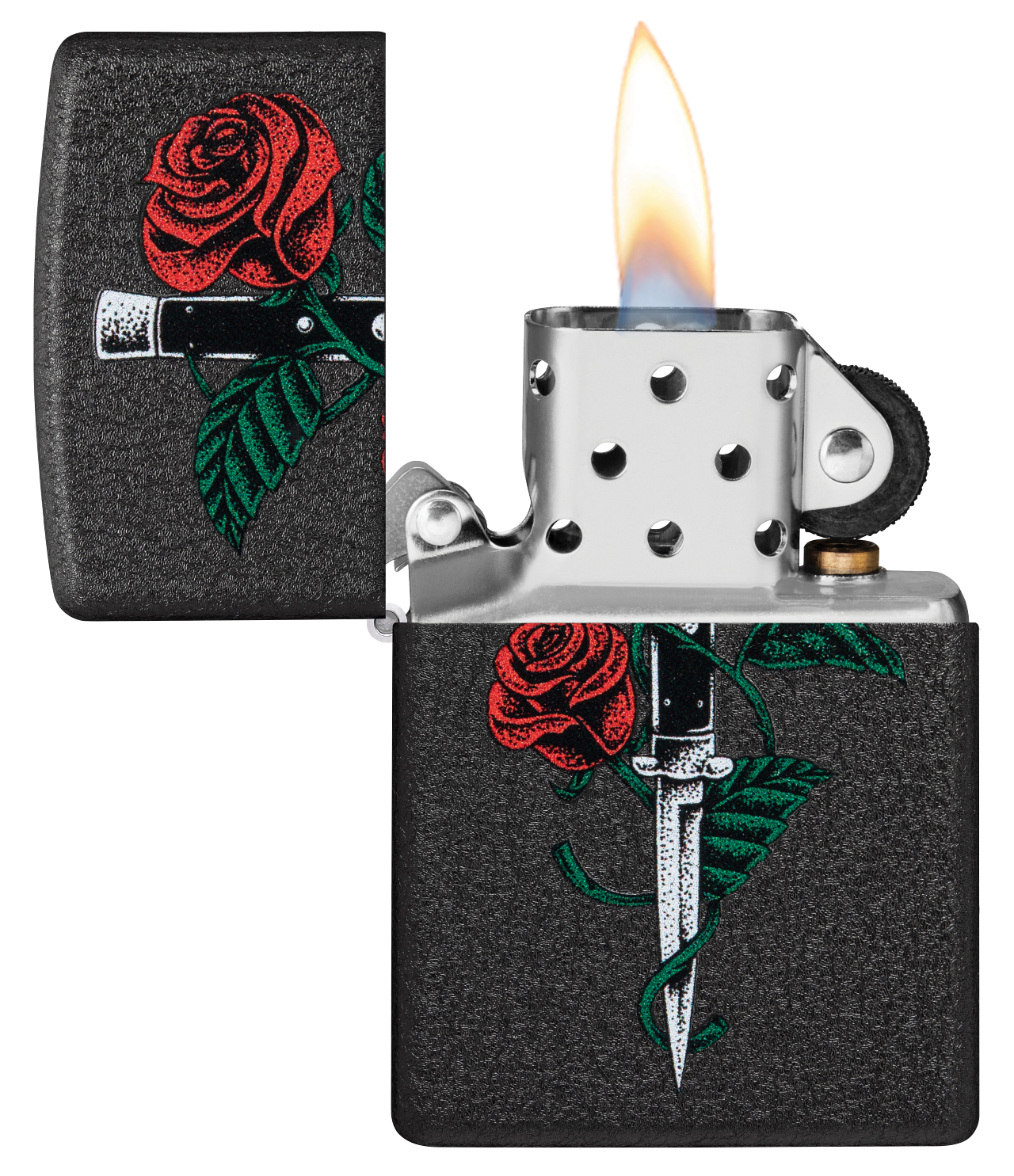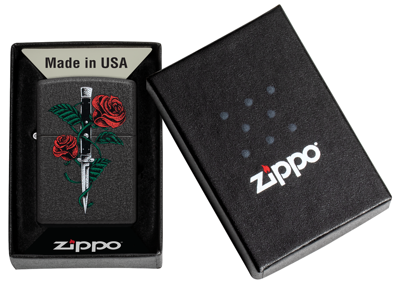 Zippo tulemasin Rose Dagger Tattoo Design